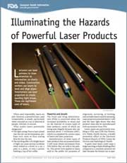 FDA Issues Warning on Misuse of Laser PointersThe Food and Drug Administration is warning parents and school officials about the possibility of eye damage to children from hand-held laser pointers. These products are generally safe when used as intended by teachers and lecturers to highlight areas on a chart or screen. However, recent price reductions have led to promotion and use of these products as children's toys. The light energy that pointers can aim into the eye can be more damaging than staring directly into the sun. Federal law requires a warning on the product label about this potential hazard to the eyes. " These laser pointers are not toys. Parents should treat them with appropriate care," said FDA Lead Deputy Commissioner Michael A Friedman, M.D. "They are useful tools for adults that should be used by children only with adequate supervision." The FDA's warning is prompted by two anecdotal reports it has received of eye injury from laser pointers -- one from a parent, the other from an ophthalmologist. Momentary exposure from a laser pointer, such as might occur from an inadvertent sweep of the light across a person's eyes, causes only temporary flash blindness. However, even this can be dangerous if the exposed person is engaged in a vision-critical activity such as driving. |